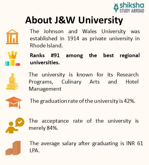 Johnson and Wales University offers various UG and PG programs in arts and sciences, business, engineering, food innovation, hospitality, nutrition, health and wellness. Johnson and Wales University courses include more than 100+ undergraduate and graduate programs through its various colleges.