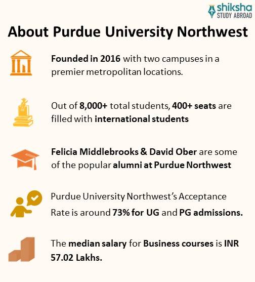The students applying at Purdue University Northwest are required to pay an application fee to submit an application successfully. A Purdue University Northwest application fee of USD 25 (INR 2,142)for UG courses and USD 75 (INR 6,012) for the PG courses, must also be submitted while filling the Pur