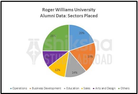 Some of the top alumni sectors at Roger Williams University for international students are given in the pie chart below: