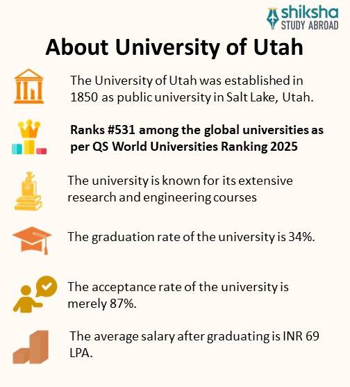 The University of Utah is a well-known university nationally as well as globally, ranked by some of the top ranking bodies. According to Shiksha Popularity Ranking, The University of Utah ranking was recorded as #69 at the national level for year 2025.