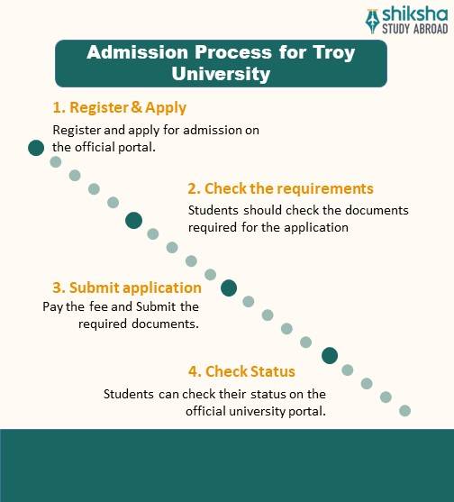 Troy University offers admissions during the fall, Spring and Summer intakes every year. The admission process for international students at the university are given as follows: