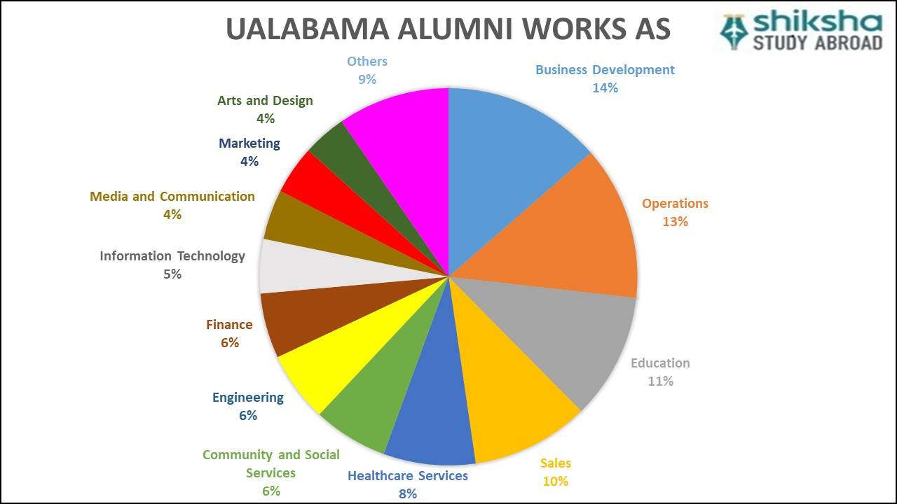 As per the alumni data, some of the popular areas where UAlabama graduates work are: