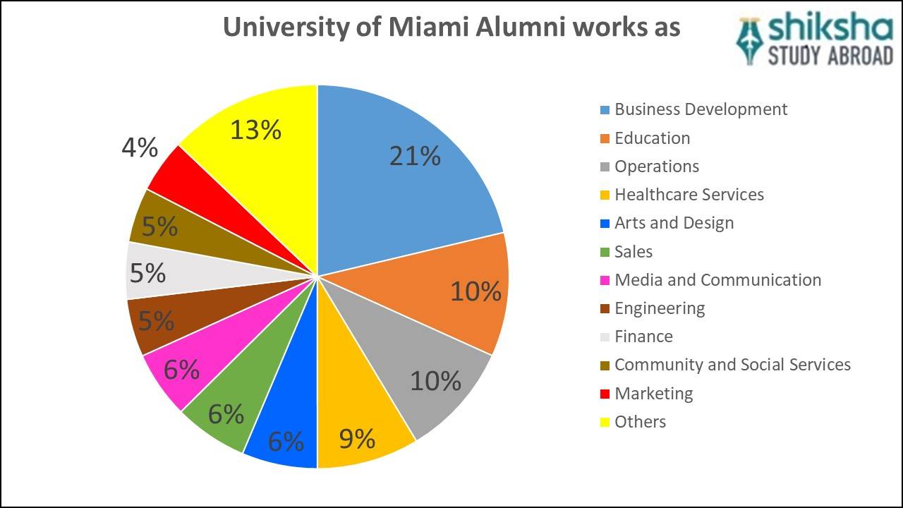 As per the alumni data, some of the areas where students work after graduating from University of Miami are: