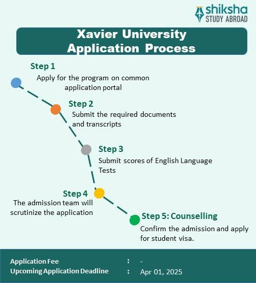 Prospective students of Xavier University can apply either through Xavier Applications or the Common Application, which are available on the university's official website. The university does not require any application fee along with the application form.