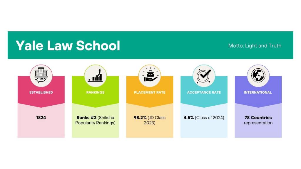 Yale Univeristy is Ivy League University. Yale Law School being Law School of Yale University which is also a part of the elite educational group 'the Ivy League'. According to the US World and News rankings body in 2025, YLS is a ranked at #1 tying with Stanford Law School in the list of the best 196 Law schools around the world.