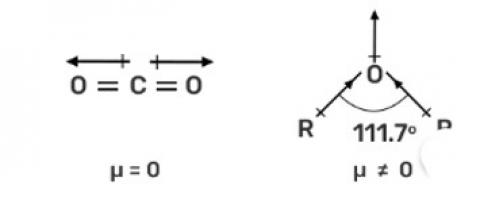 In O? C? O, the dipole moment is zero, hence non-polar while in R—O—R the dipole moment is non-zero due to which it is polar.