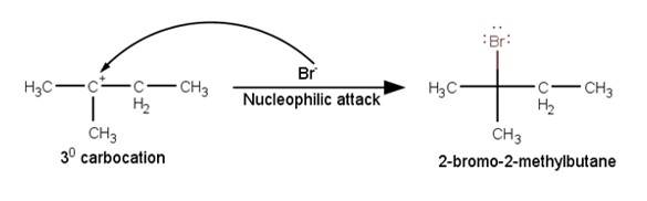The last step of the reaction is the nucleophilic attack of Br- ion on the 3° carbocations giving the final product.