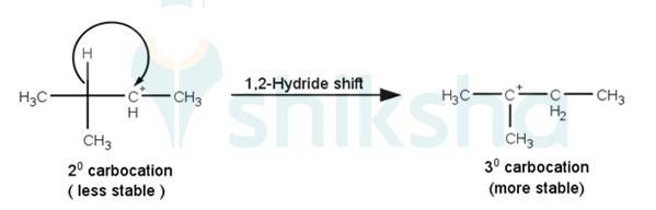 The next step is a rearrangement of the 20 carbocations formed in the above step is less stable it rearranges by a 1,2-hydride shift to form more stable 3° carbocations.
