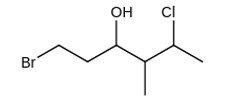 The IUPAC name giving the lowest number to the functional group obeying the lowest set of locants is 1-bromo-5-chloro-4-methylhexan-3-ol.