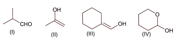 All structure can produce -CHO functional group which gives +ve test of Tollen's reagent except structure (II), because if forms ketonic group after tautomerisation