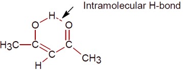 The intramolecular H-bond in the enol form of acetylacetone is shown.