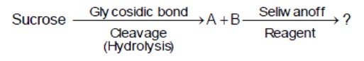 Seliwanoff's test distinguishes aldoses from ketoses. Sucrose hydrolyzes to glucose (aldose) and fructose (ketose). Fructose gives a red color.