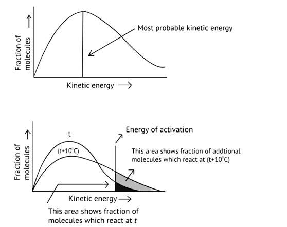 As illustrated in the graph, as the temperature rises, the peak pushes ahead, increasing probable kinetic energy while decreasing the number of molecules utilizing it, resulting in a faster rate of reaction.