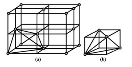 2. A ccp structure unit cell is divided into 8 small cubes. Each small cube has atoms at alternate corners as shown in the figure. In all, each small cube has 4 atoms. When these are joined to one another, they make a regular tetrahedron. Thus, there is one tetrahedral void in each small cube and 8 tetrahedral voids in total. Each of the eight small cubes has one void in one unit cell of ccp structure. We know that ccp structure has four atoms per unit cell. Thus, the number of tetrahedral voids is twice the number of atoms.
