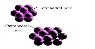 52. Option (iii) and (iv) are correct since tetrahedral voids are formed when the triangular void in the second layer lie exactly above the triangular voids in the first layer and the triangular shape of these voids oppositely overlap while the octahedral voids are formed when triangular void of second layer is not exactly overlap with similar void in first layer. This can be shown as-