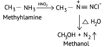 Primary aliphatic amines react with nitrous acid to form aliphatic diazonium salts, which are unstable and release nitrogen gas and alcohol quantitatively.