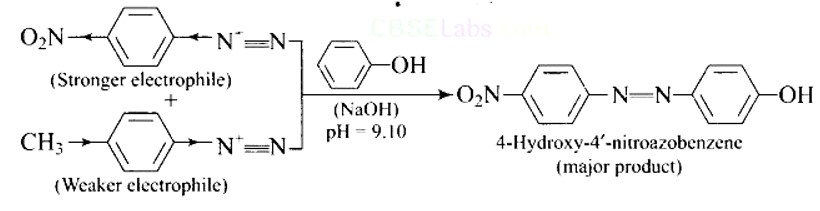 The cation p-nitrophenyldiazonium is a stronger electrophile than the cation p-toluene diazonium.