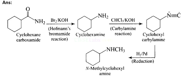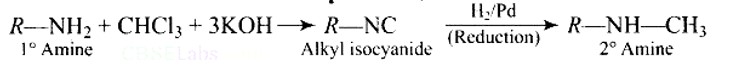Ans: Carbylamine reaction is shown by primary amines only, primary amines react with chloroform in the presence of alcoholic KOH to form isocyanides which upon catalytic reduction gives secondary amines as the final product.