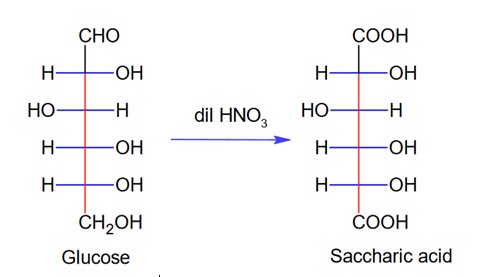 Here, glucose is A which on oxidation with HNO3 gives saccharic acid as