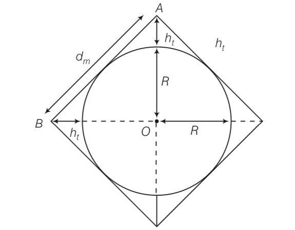 dm2= (R+h)2+ (R+h)2= 2 (R+h)2