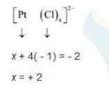 (iii) Let Oxidation number of Pt be x and charge on the complex is given as -2