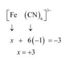 Let Oxidation number of Fe be x and charge given on the complex is given as -3