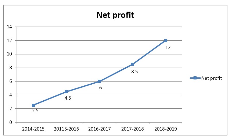 The highest percentage growth in net profit relative to the previous year was achieved in 2015-2016.