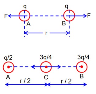 For sphere 'C' after contacting with 'A'. qA = qC =