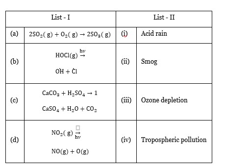 | (b) HOCl (g) - (hν)->? H +? l | (iii) | Ozone depletion |