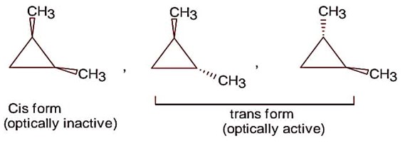 Following are the possible isomers of 1, 2-dimethyl cyclopropane