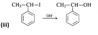 The third reaction is a nucleophilic substitution process that uses the SN1 mechanism to replace the -I group with -OH.