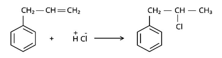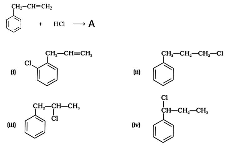 Markonikov's rule can be used to explain the results. The hydrogen from HCl is added to the carbon immediately bonded to the most hydrogen atoms, whereas the -Cl is attached to the carbon directly bonded to the least hydrogens, according to the rule. As a result, the right response is (iii).