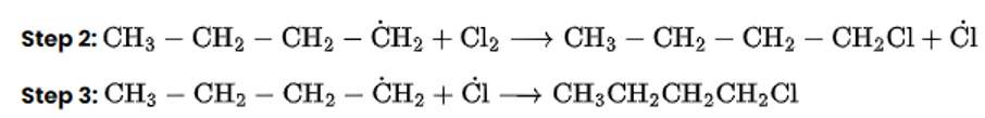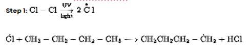 Chlorination in the presence of UV light can be used to produce alkyl chlorides from alkanes. Under the action of UV radiation, the chlorine molecule generates free radicals, which react with alkanes to create a mixture of isomeric mono- and poly haloalkanes.