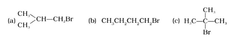 Isomeric alkyl halides' boiling points are related to their branching, with a reduction in B.P. as branching increases. As a result, the boiling point of the tertiary isomer is the lowest, while that of the primary isomer is the highest. Thus, the order of lowering boiling points is (b) > (a) > (c).