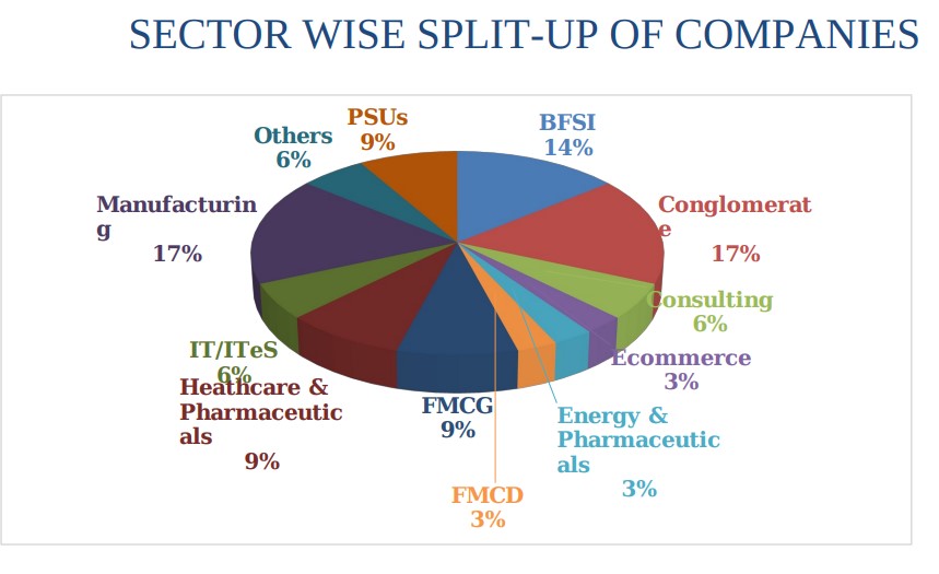 As per the latest report, Conglomerate and Manufacturing emerged as the top recruiting sectors with 17% offers made to the HRMLM students during TISS Mumbai placements 2025. Check out the image below for sector-wise offers provided to the HRM students during TISS Mumbai placements 2025:
