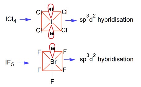 As per the VSEPR Theory the electron? pair geometry due to SN = 5 will be trigonal bipyramidal. The hybridization type will be hybridisation. However, the three lone pairs occupy equatorial positions, resulting in a linear molecular geometry.