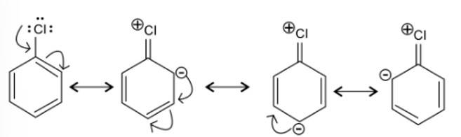 The halogens atom weakly deactivate the ring due to the -I effect and directs the incoming group to the ortho and para position due to the +R effect.