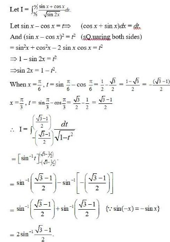 Let sin x – cos x = t. =>(cosx + sin x) dx = dt.
