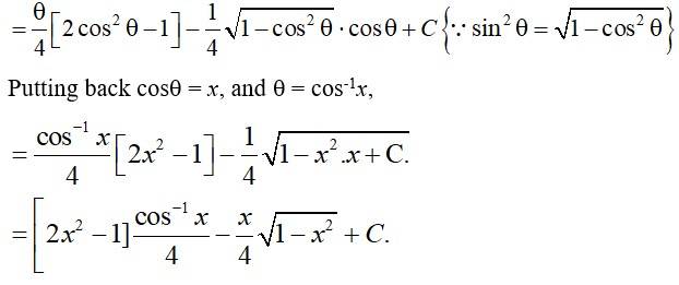 Putting cos-1 x =θ=> x = cosθ=>dx = - sinθdθ.