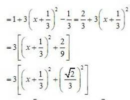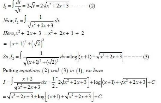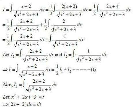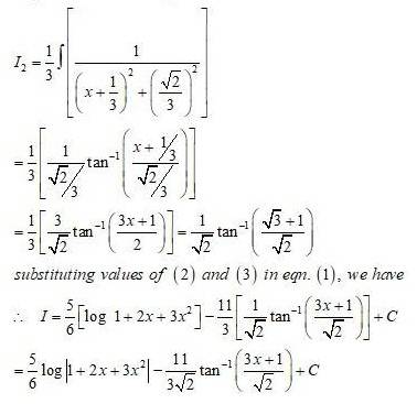 (2+6x)dx=dtI1=dtt=log|t|=log|1+2x+3x2|    ____(2)I2=11+2x+3x2dxNow,1+2x+3x2=1+3(x2+23x)Therefore,1+3(x2+23x)=1+3(x2+23x+1919)