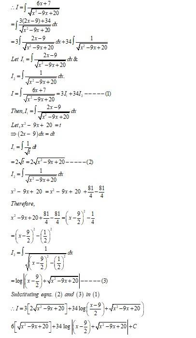 6x+7x29x+20Let6x+7=Addx(x29x+20)+B 6x+7=A(2x9)+BEquatingthecoefficientofxandconstantterm,wehave2A = 6           and  9A+B= 7