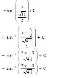 Let(x+3)=Addx(x22x5)+B(x+3)=A(2x2)+B Equatingthecoefficientofxandconstanttermonbothside,weget Weget     2A=1    and  2A+B=3 A= 12            B=4  Therefore,(x+3)=12(2x2)+4(1)I=x+3x22x5dx=12(2x2)+4x22x5dx=122x2x22x5dx+41x22x+5dxI=x+3x22x5dx=12I1+4I2I1=2x2x22x5dxLetx2 2x 5 =t