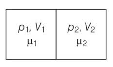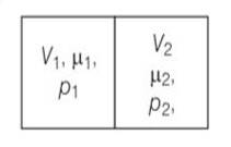 when the partition is removed the gases get mixed without any loss of energy . the mixture now attains a common equilibrium pressure and total volume of the system is sum of the volume of individual chambers V1 and V2