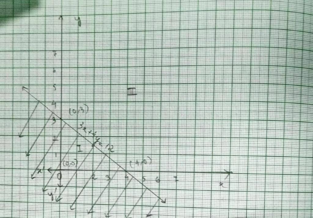 29. For inequality 3x+4y≥ 12 the equation of the line is 3x+4y=12
