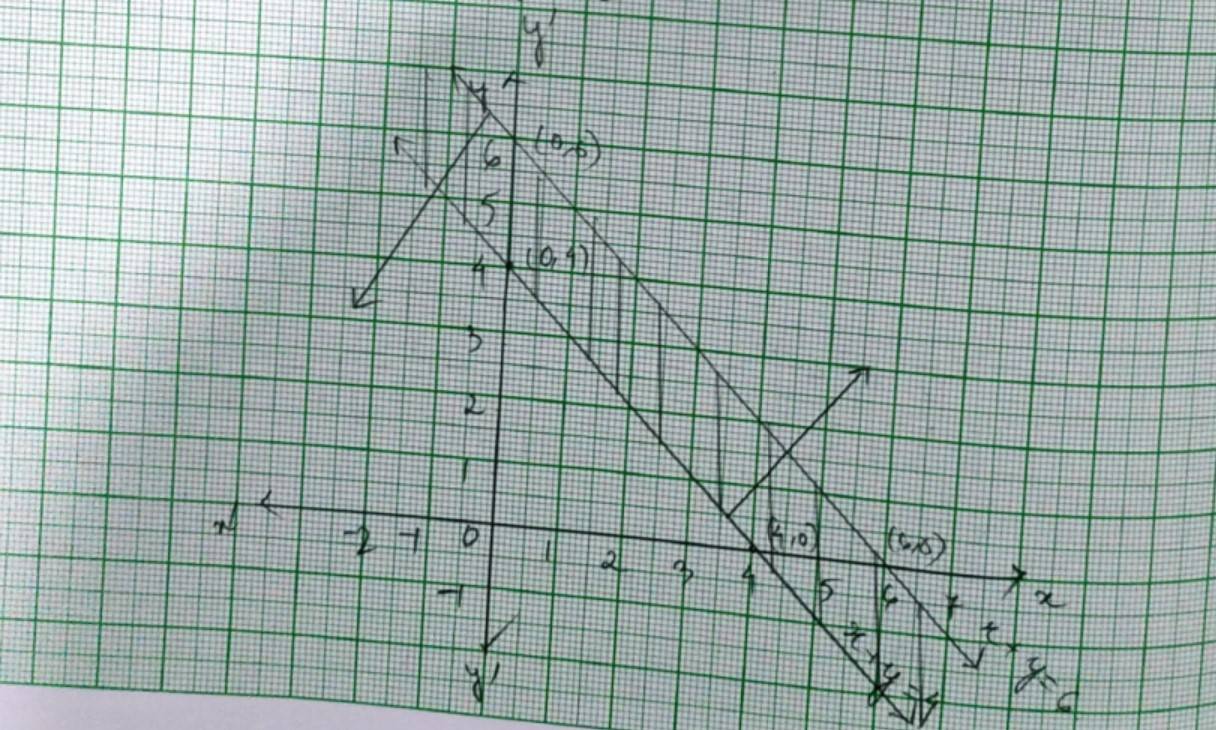 ? The reqd solution of the given system of inequality is the shaded region.