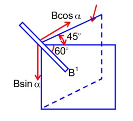 Then B cos 45° = B' cos 60°- (i)