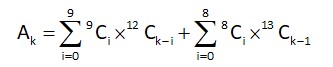 = coefficient of x4 in (1 + x)21 + coefficient of x4 in (1 + x)21
