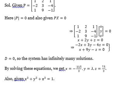 a month agoIf A = {X = (x,y,z)?: PX=0 and x²+y²+z²=1}, where P = [1, 2, 1; -2, 3, -4; 1, 9, -1], then the set A