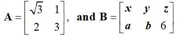 L e t A = [ a 1 1 a 1 2 a 2 1 a 2 2 a 3 1 a 3 2 ] 3 * 2 G i v e n t h a t a i j = e i x s i n j x a 1 1 = e x s i n x a 1 2 = e x s i n 2 x a 2 1 = e 2 x s i n x a 2 2 = e 2 x s i n 2 x a 3 1 = e 3 x s i n x a 3 2 = e 3 x s i n 2 x H e n c e , t h e m a t r i x A = [ e x s i n x e x s i n 2 x e 2 x s i n x e 2 x s i n 2 x e 3 x s i n x e 3 x s i n 2 x ]