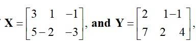 G i v e n t h a t X = [ 3 1 1 5 2 3 ] a n d Y = [ 2 1 1 7 2 4 ] ( i ) X + Y = [ 3 1 1 5 2 3 ] + [ 2 1 1 7 2 4 ] = [ 3 + 2 1 + 1 1 1 5 + 7 2 + 2 3 + 4 ] = [ 5 2 2 1 2 0 1 ] ( i i ) 2 X 3 Y = 2 [ 3 1 1 5 2 3 ] 3 [ 2 1 1 7 2 4 ] = [ 2 * 3 2 * 1 2 * 1 2 * 5 2 * 2 2 * 3 ] [ 3 * 2 1 * 3 1 * 3 3 * 7 3 * 2 3 * 4 ] = [ 6 2 2 1 0 4 6 ] [ 6 3 3 2 1 6 1 2 ] = [ 6 6 2 3 2 + 3 1 0 2 1 4 6 6 1 2 ] = [ 0 1 1 1 1 1 0 1 8 ] ( i i i ) X + Y + Z = 0 [ 3 1 1 5 2 3 ] + [ 2 1 1 7 2 4 ] + [ a b c d e f ] = [ 0 0 0 0 0 0 ] w h e r e Z = [ a b c d e f ] = [ 3 + 2 + a 1 + 1 + b 1 1 + c 5 + 7 + d 2 + 2 + e 3 + 4 + f ] = [ 0 0 0 0 0 &